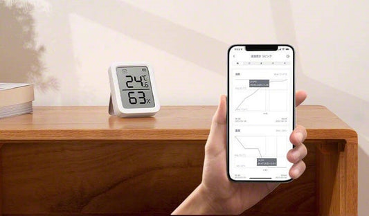 部屋の温度・湿度をリアルタイムにスマホで確認できます。