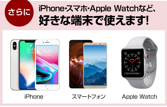 iPhone・スマホ・AppleWatchなど、好きな端末で使えます。
