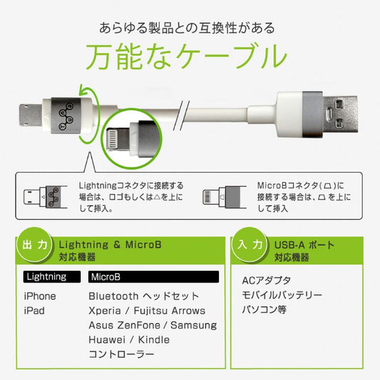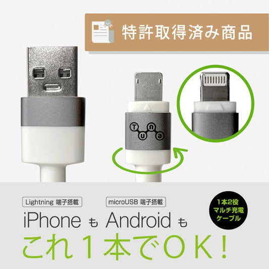 【Tuna】 1本2役 For iPhone & For MicroB 対応充電・データ転送ケーブル 1m GWC-1AM52121D