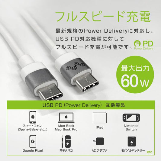 【Tuna】超急速充電PD60W対応Type-C充電・データ転送ケーブル 1m GWC-1CC2321D