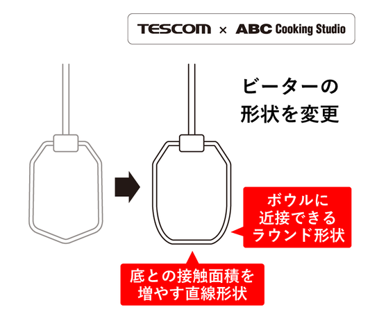 ABC Cooking Studioとの共同開発で生まれた新ビーター採用
